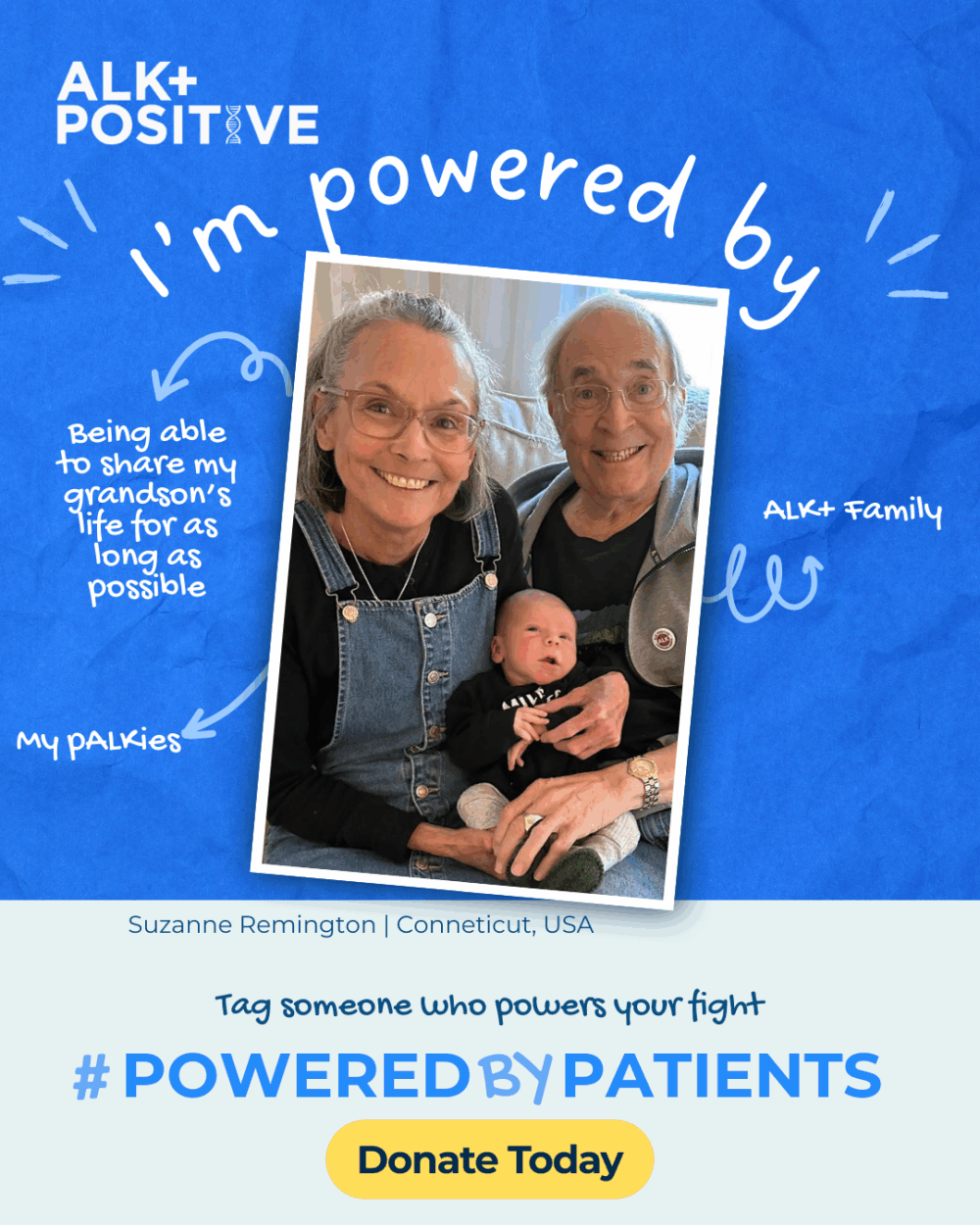 I believe deeply in ALK Positive’s mantra: we are stronger together. Especially now, with uncertainty around federal funding, we must come together to keep research moving forward. I truly believe each of us can find $8 a month to help make that happen. Together.