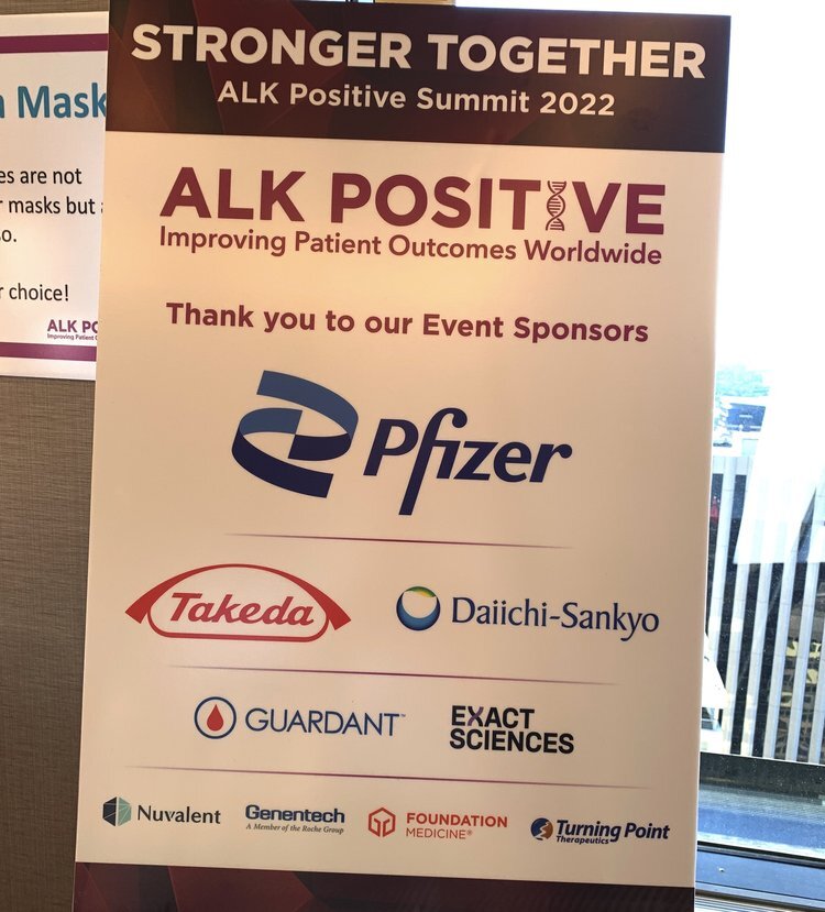 A patient panel talking about their journeys and advice while thriving with Stage IV ALK lung cancer was also inspiring to many and relatable. We kicked off Sunday with patient videos and a southwestern breakfast, and Dr. David Carbone was our keynote speaker. Expert Panels with ALK Key Opinion Leaders and professionals were informative and gave everyone hope. We ended the summit with breakout groups that included, ASK the experts, Caregivers support, ALK Parenting, and How to talk to your healthcare Team. The event was attended by 9 industry partners. There were no known government officials who registered for the event. All videos can be viewed free of charge on our ALK Positive Youtube channel.
